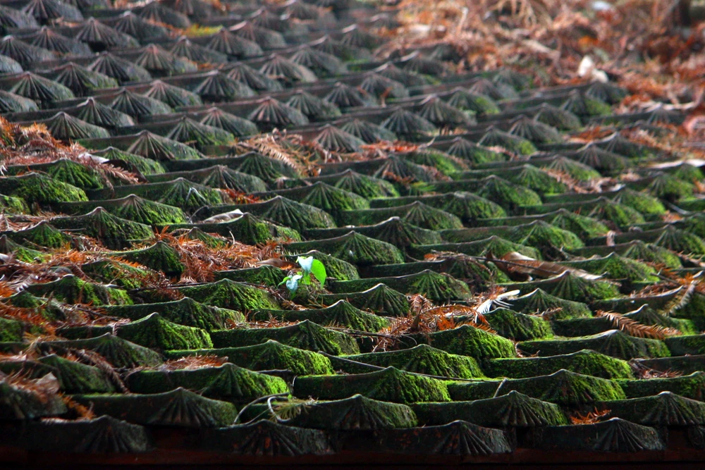 Phía bên ngoài là hàng ngói rêu phong cổ kính...