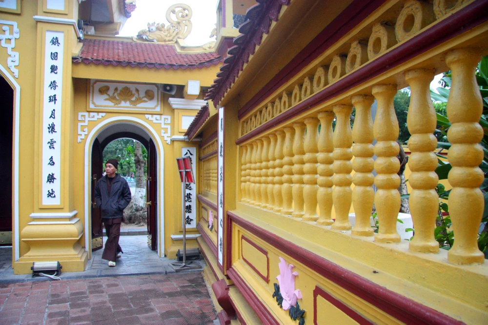 Lối vào chùa nằm trên đường Thanh Niên, chùa Trấn Quốc đã có lịch sử 1.500 năm, là nơi xưa kia các vua chúa ngự giá đến vãng cảnh và cúng lễ vào những ngày rằm, lễ tết.