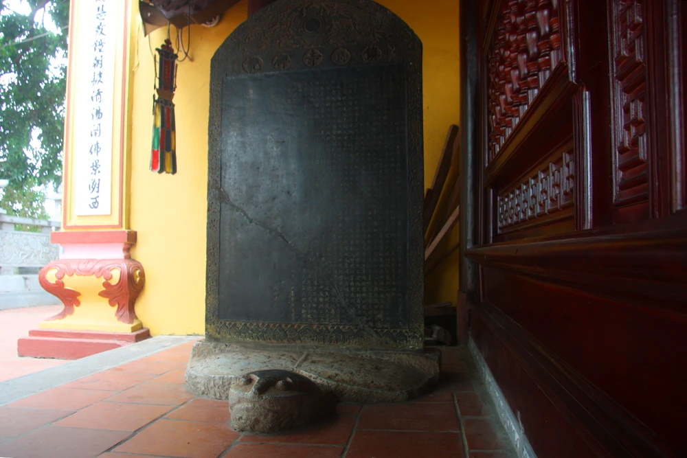 Trong chùa hiện nay đang lưu giữ 14 tấm bia, trên bia ghi lại việc tu sửa lại chùa sau một thời gian dài đổ nát, công việc này bắt đầu vào năm 1813 và kết thúc vào năm 1815…