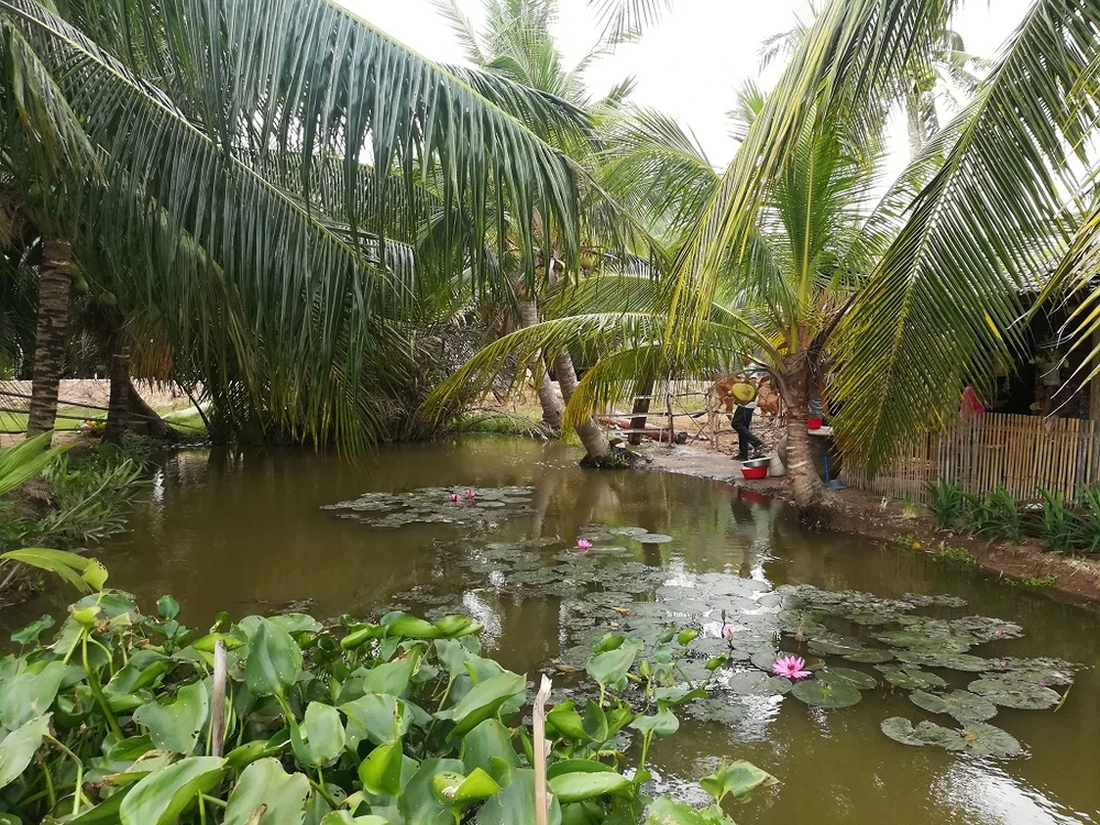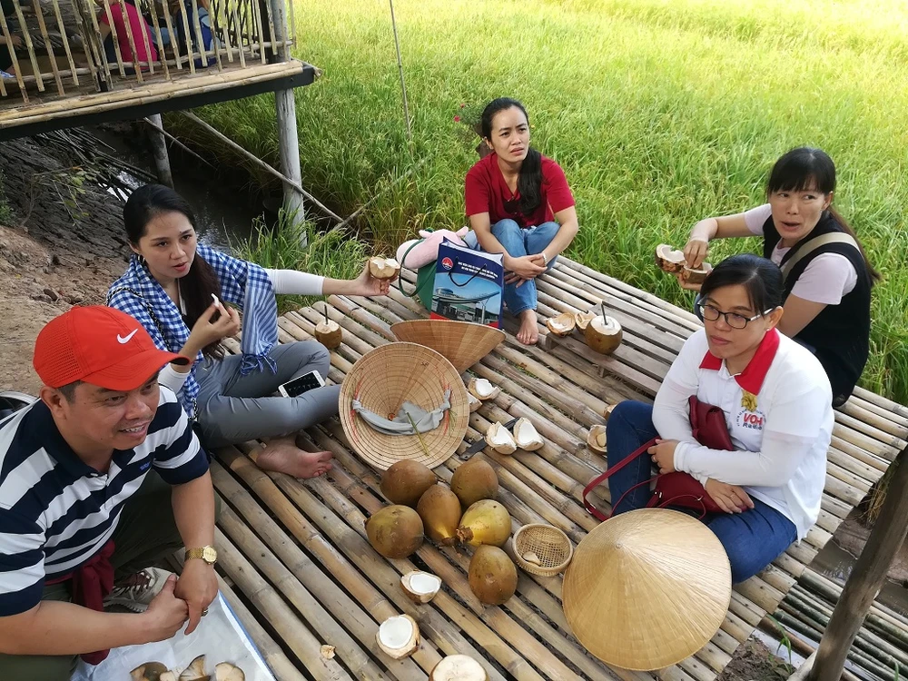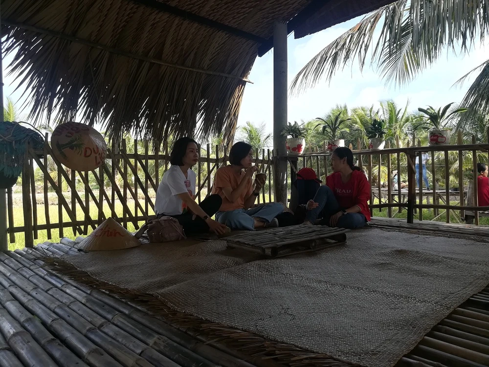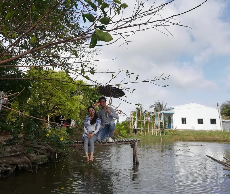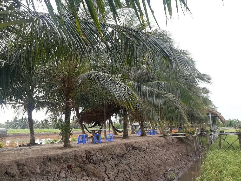 Với diện tích 60 ha, điểm du lịch này phát huy được lợi thế ở những miền quê. Du khách muốn đến từng điểm nào để tham quan, trải nghiệm đều phải đi bộ một đoạn đường khá dài. Mà thú vị ở chỗ điểm du lịch tại khu này chính là ngay trong nhà của người dân. Mỗi căn nhà, mỗi điểm đến là một trải nghiệm rất miền Tây, vừa được đón tiếp nồng hậu lại có thể thay cả chủ nhà nấu ăn, làm bánh, xếp lá dừa… Chạy dọc theo cánh đồng là những hàng dừa xanh mướt, nặng trĩu trái ngọt; lối vào nhà từng hộ dân đồng thời là các điểm tham quan, trồng nhiều rặng hoa li ti, đang mùa khoe sắc.