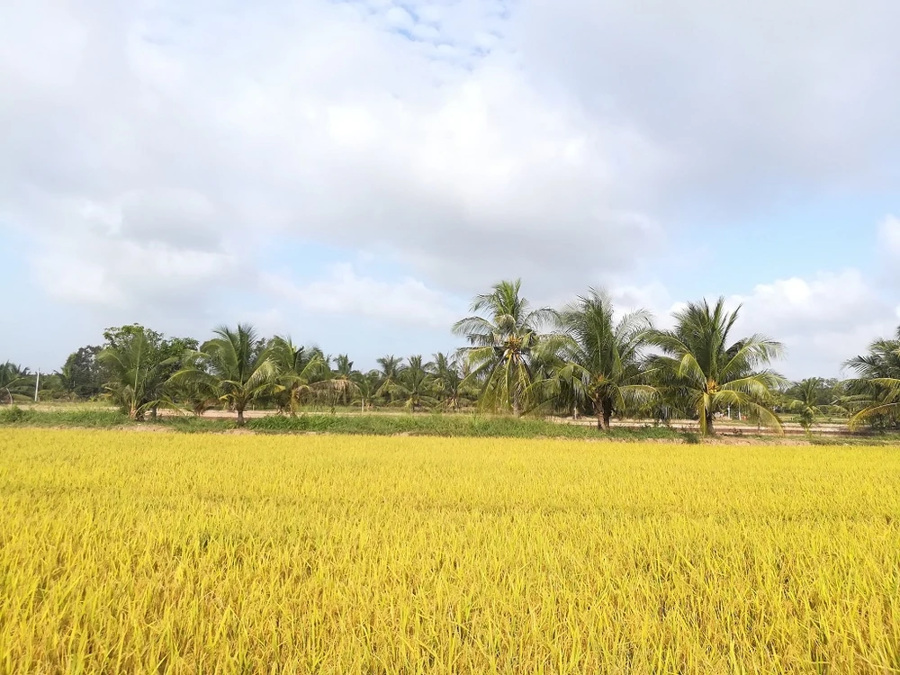 Dọc lối đi vào những điểm tham quan là khung cảnh của những cây dừa, đồng lúa...