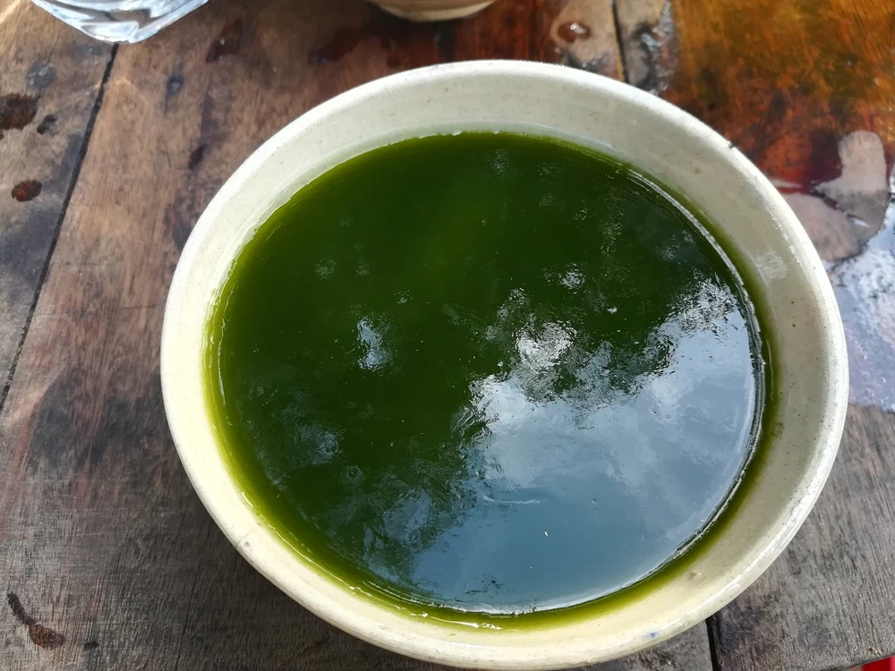 Muốn ăn bánh lá mơ, phải chấm thêm nước cốt dừa thì mới trọn vị bánh. Ảnh: TUYỀN-THOA