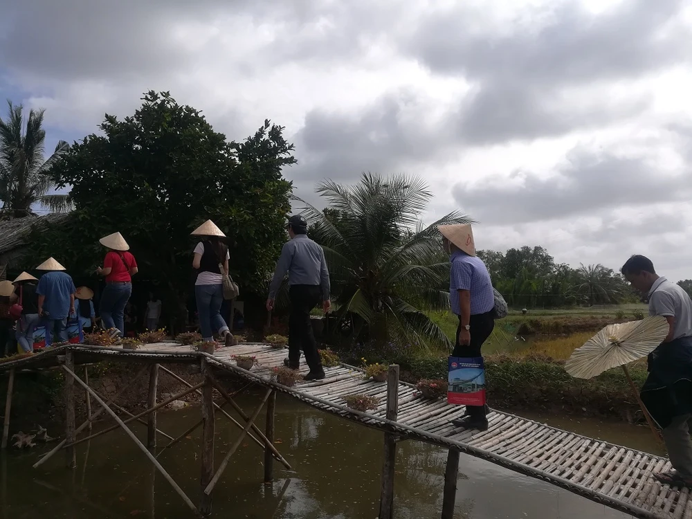 Đến với Cồn Chim, du khách có nhiều cơ hội được đi trên những cây cầu như thế này. Ảnh: TUYỀN-THOA