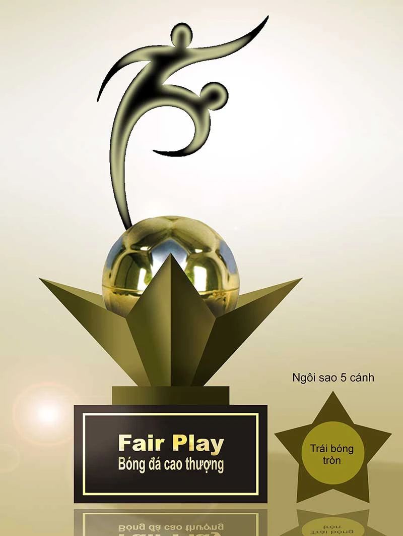 - Phần trên cao là hai chữ F, P viết tắt của Fair Play thiết kế thành hình dáng cầu thủ bóng đá với pha bóng điệu nghệ cũng là biểu tượng logo Fair Play của FIFA.