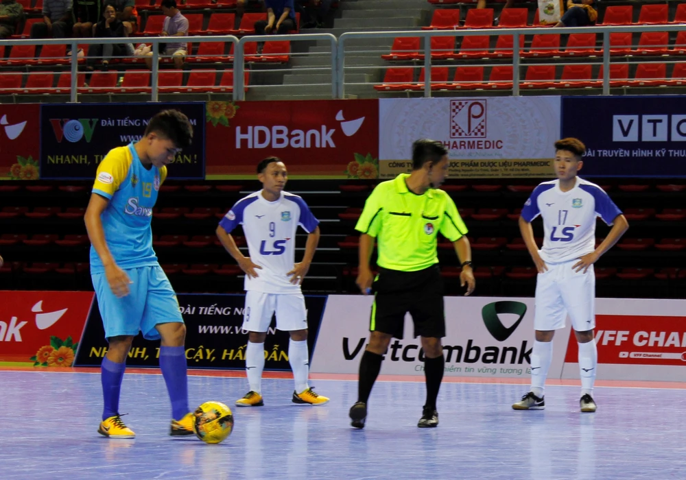 Trọng tài phải nhiều lần dừng trận đấu để xử lý lỗi của cầu thủ. Ảnh: UYÊN PHẠM