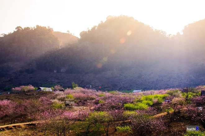 Mộc Châu có nhiều loại gồm đào Mèo, đào Pháp, đào Mỹ, đào phai, đào trắng…, nhưng đẹp nhất phải kể đến đào rừng. Loại này có 5 cánh mỏng manh và màu phớt hồng quyến rũ. Ảnh: Hachi8