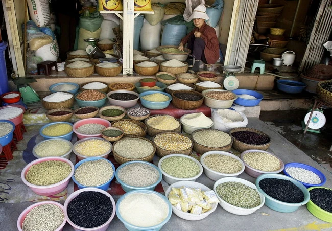 Nhiều loại ngũ cốc được bày bán tại chợ ở Hà Nội, Việt Nam năm 2009. (Chitose Suzuki/AP)