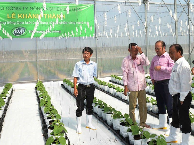 Khu nhà màn trồng dưa lưới ứng dụng công nghệ của SAGRI ở Củ Chi. Ảnh: ĐT