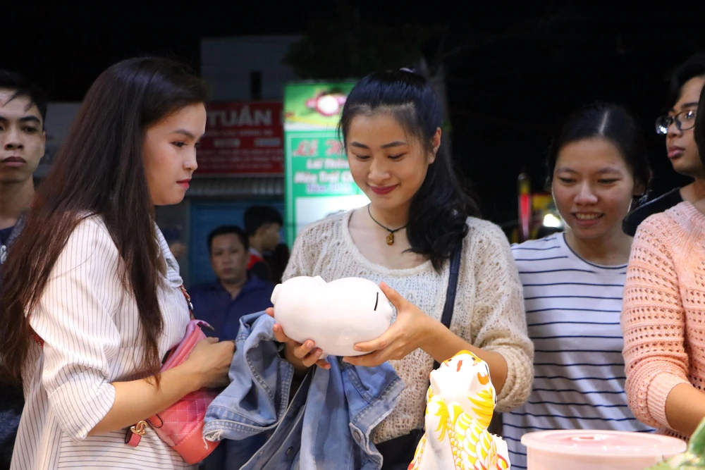 Các bạn trẻ thích thú với đường nét tinh xảo trên các sản phẩm gốm sứ.