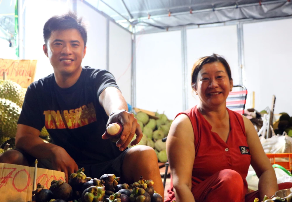Ông Nguyễn Văn Thanh đã có thâm niên 4 năm bán trái cây tại lễ hội này. Ông nói Bán ở lễ hội là chủ yếu lấy không khí, vui là chính, mình đem trái cây ngon, trái cây đầu mùa cho thực khách thưởng thức, họ thấy ngon là mình thấy vui.