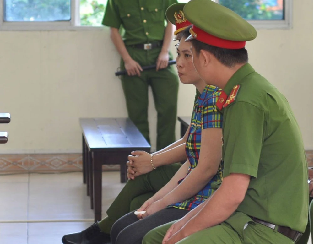 Bị cáo Diễm được dẫn giải tại phiên tòa. Ảnh: VH