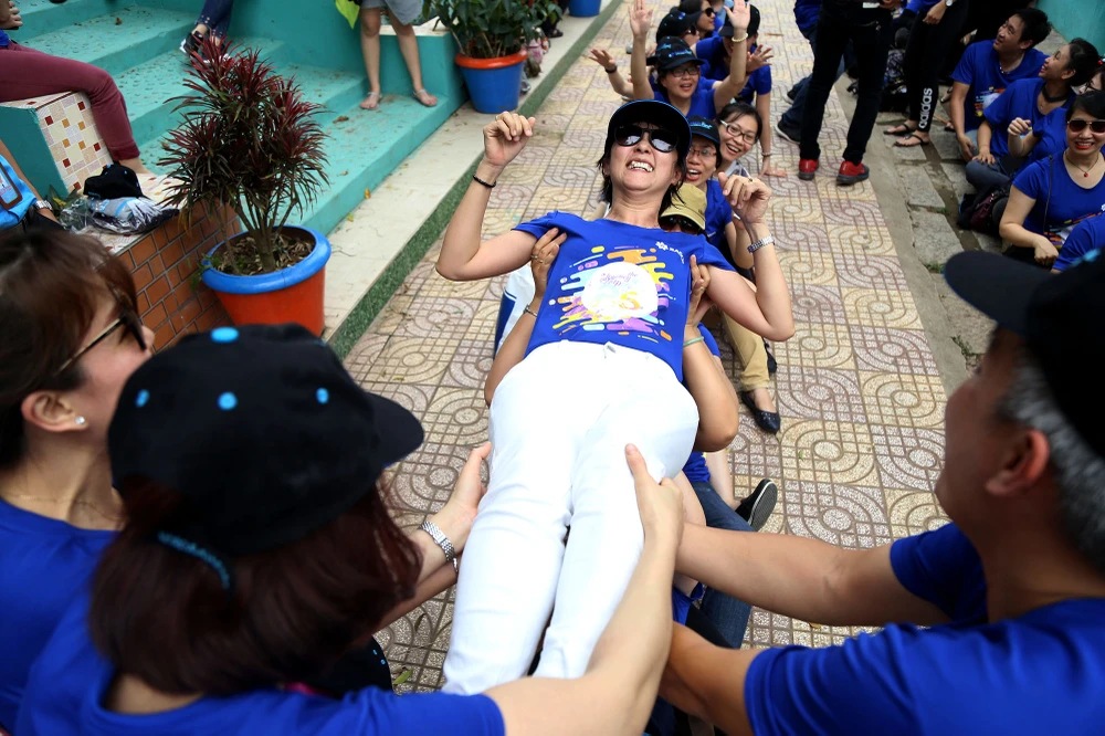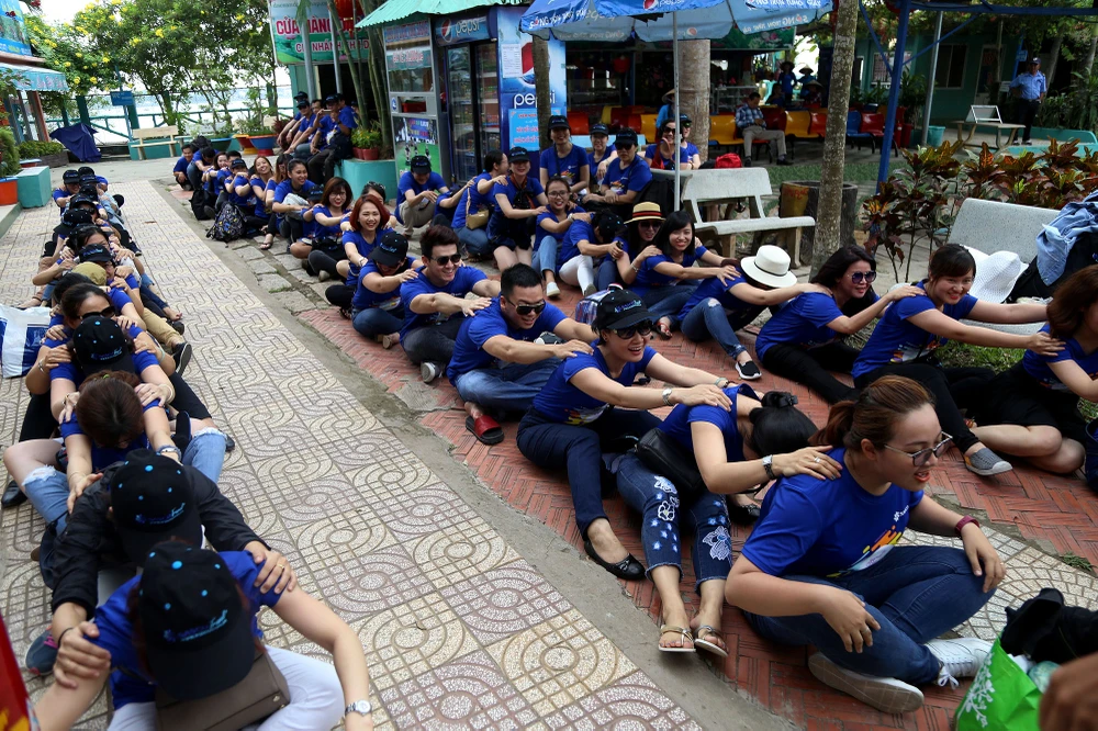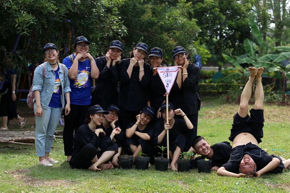 Các đội thi tạo dáng vui nhộn chụp ảnh lưu niệm.