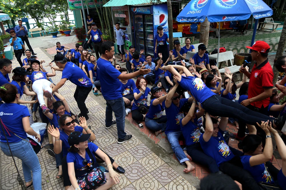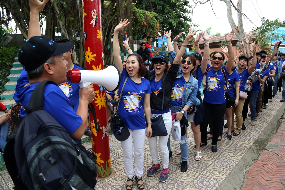 Khách tham quan đến đây được mặc quần áo bà ba tham gia vào các hoạt động team building miệt vườn trên cù lao An Bình như: đi xe đạp qua cầu khỉ, tát ao bắt cá, trồng cây xanh... cực kỳ hấp dẫn.