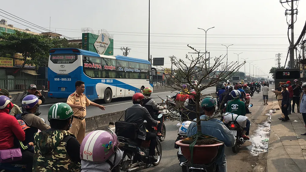 Vào thời điểm cận Tết lượng phương tiện tập trung lưu thông khá đông tiềm ẩn nhiều nguy cơ tai nạn. Ảnh: H.Tâm