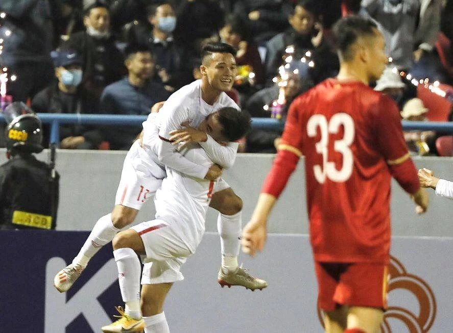 Trận nào U-22 Việt Nam cũng ghi bàn trước vào lưới các đàn anh. Ảnh: NGỌC DUNG.