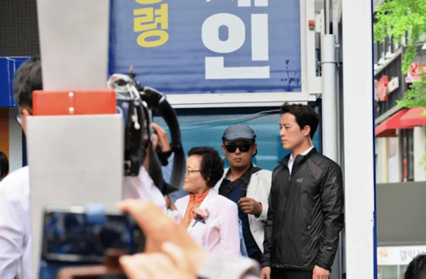 Anh Young-jae luôn xuất hiện cùng Tổng thống tại mọi địa điểm lúc tranh cử. Ảnh: DAILY MAIL