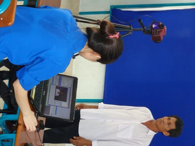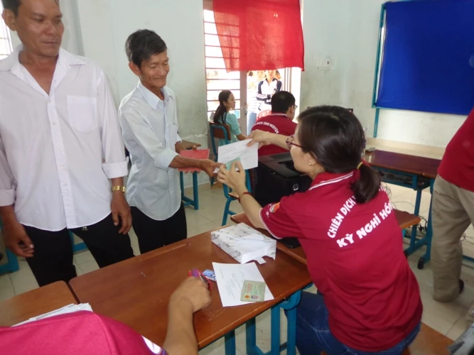 Ánh sáng đã được điều chỉnh. Đến lượt “lão nông” Phạm Minh Hoàng, đến từ thôn Bình Phước, xã Bình Khánh lên chụp ảnh. Trên tay lão còn cầm chắc cuốn sổ hộ khẩu.