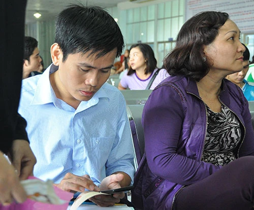 Bạn Tuấn Anh (làm việc ở Co-op Mark) “tác nghiệp” ngay tại ga Sài Gòn bằng điện thoại đi động và trong khoảng 15 phút đã cười: “Có vé rồi”. Tuấn Anh nói: “Như em rành công nghệ thì việc mua vé trên mạng không vấn đề gì, song nhiều người không rành rẽ (như anh Diêu đã nêu) thì quả thật họ bị mất cơ hội”. Ảnh: MP