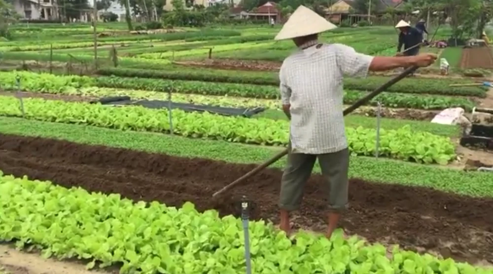 Ngày hôm trước có mưa nên buổi sáng hôm ấy, người dân chủ yếu làm đất và thu hoạch rau. Đàn ông làm đất, đánh rãnh, bỏ phân. Phụ nữ cắt rau, cấy và gieo cây mới, hạt mới. Thấy một bà cụ ngoài bát thập đang nhổ và cắt bỏ gốc những búp xà lách xếp vào một cái rổ to, tôi đến gần hỏi ra mới biết rau nhà bà là để bỏ mối cho các nhà hàng và siêu thị cao cấp tận TP Đà Nẵng.