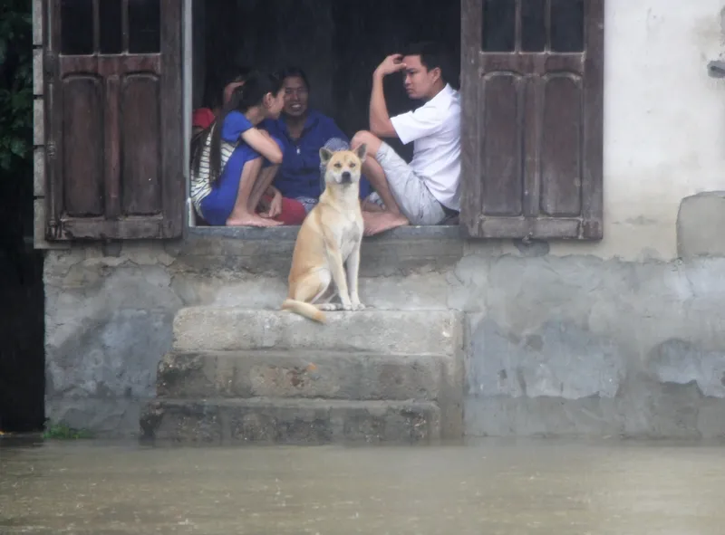 Người dân vùng trũng ở Quảng Điền mong muốn nước lũ nhanh rút để dọn dẹp nhà cửa và sớm ổn định lại cuộc sống. Ảnh: NGUYỄN DO