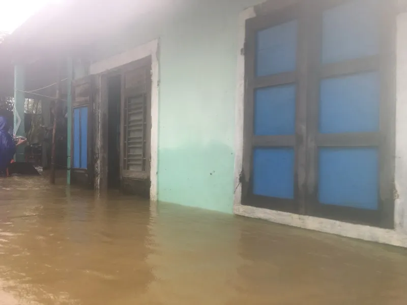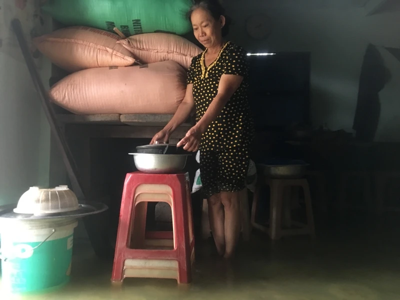 Bên trong nhà, nước lũ vẫn còn khoảng 20cm đến 30cm. Người dân mong ngóng nước lũ nhanh rút để sớm dọn dẹp nhà cửa. Ảnh: NGUYỄN DO