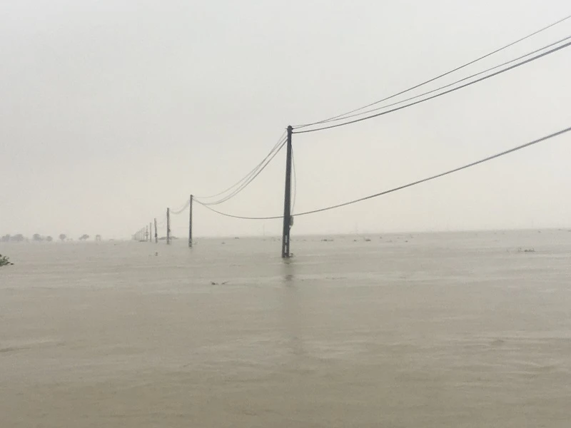 Trao đổi với Pháp Luật TP.HCM, ông Hoàng Đăng Khoa, Chủ tịch UBND huyện Quảng Điền cho biết, nước lũ tại địa phương đã dần rút, nhưng vẫn còn cao. Nhiều xã vùng trũng vẫn đang bị chia cắt. Trong đó có xã Quảng Phước là ngập nặng nhất. Ảnh: NGUYỄN DO
