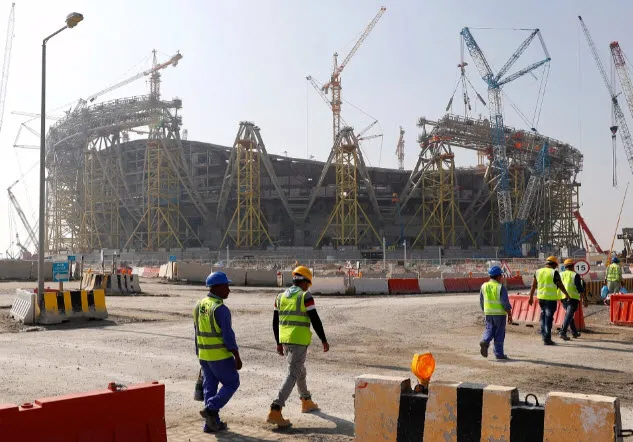 Sân Lusail trong quá trình xây dựng. ẢNH: REUTERS