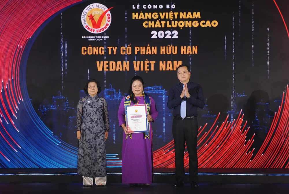 Bà Nguyễn Thu Thủy - Phó Giám đốc Đối ngoại, đại diện Vedan Việt Nam nhận chứng nhận “Hàng Việt Nam chất lượng cao 2022”