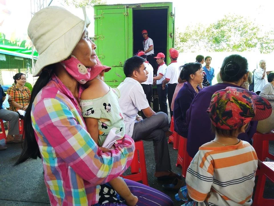 Ngồi một góc sân, chị Nguyễn Thị Thu Hằng (38 tuổi, ngụ xã lộ 25, huyện Thống Nhất, tỉnh Đồng Nai) cùng hai con nhỏ ngồi chờ tới lượt khám. Vừa ru đứa bé chưa đầy một tuổi, chị vừa kể: "Tôi sống nhờ vào nghề bán vé số nên không có điều kiện đi khám sức khỏe định kỳ bao giờ. Chỉ khi bệnh thật nặng mới tìm tới bệnh viện. Mấy ngày nay đau đầu dữ lắm, chân lại khập khiễng mà khổ nỗi nhà không có tiền nên cứ cắn răng chịu. May mà hôm trước trưởng ấp thông báo cho tôi có đợt khám chữa bệnh và cấp thuốc miễn phí nên hôm nay nghỉ bán để đi khám. Mong là bệnh đỡ hơn để còn có sức khỏe đi làm, nuôi các con".