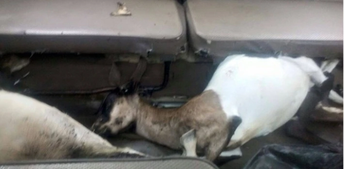 Một con dê bị binh sĩ giết thịt chống đói sau khi cướp của một người dân. (Ảnh: EL CARORENO)