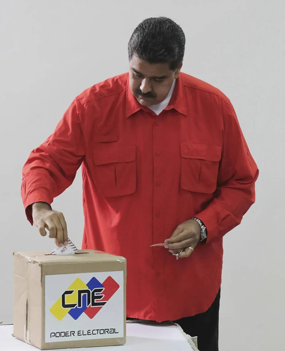 Tổng thống Nicolas Maduro bỏ phiếu bầu cử tại thủ đô Caracas ngày 30-7. Ảnh: AP