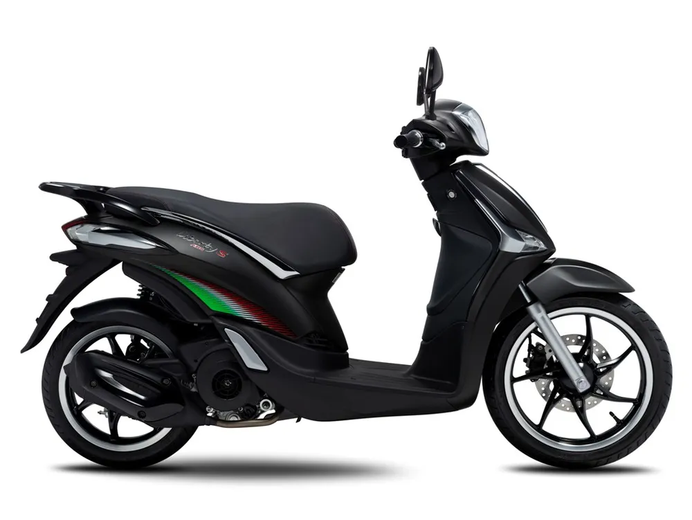 Piaggio Liberty Italia phiên bản đặc biệt với hai lựa chọn là màu đen matte và màu trắng. Lấy cảm hứng từ ý nghĩa của lá cờ Ý, phiên bản đặc biệt thiết kế với tem cờ Ý chạy dọc hai thân xe bên trái và bên phải nhắc lại trên yếm trước.