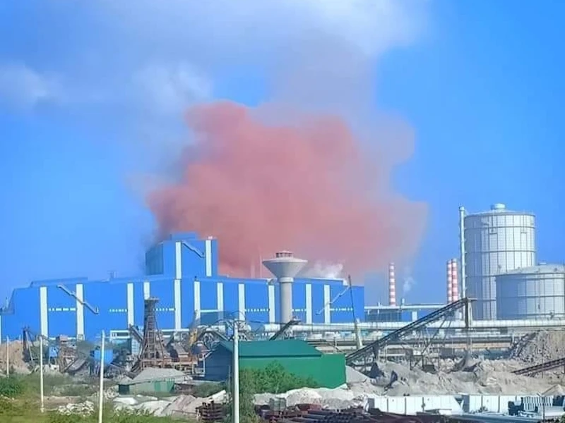 Sáng 23-12, người dân khu vực gần Nhà máy thép Hòa Phát Dung Quất (Khu kinh tế Dung Quất, huyện Bình Sơn, Quảng Ngãi) phản ánh nhà máy này thải ra khói có màu nâu khác lạ khiến họ rất hoang mang.