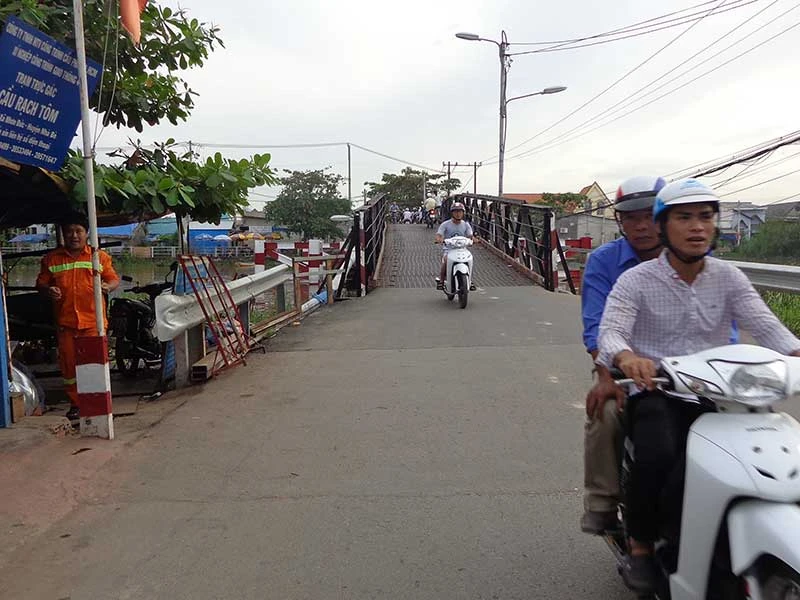Cầu Rạch Tôm trên đường Lê Văn Lương nằm trong vùng ảnh hưởng của vết nứt cũng có nguy cơ sập đổ. Ảnh: L.ĐỨC