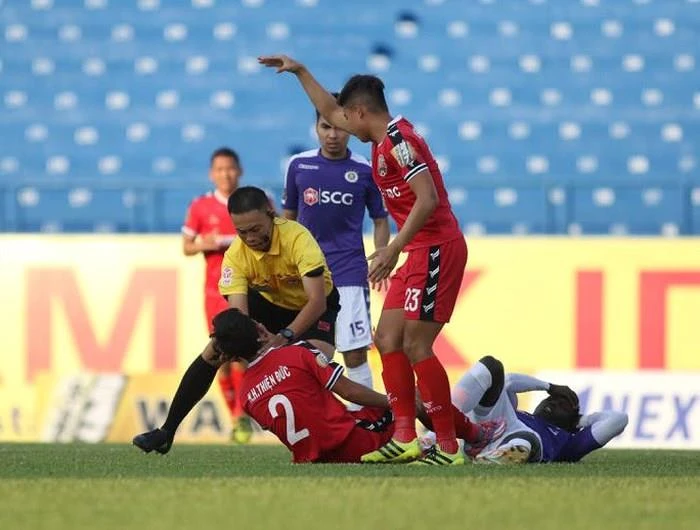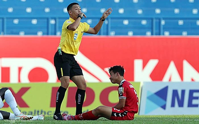 Trọng tài Ngô Duy Lân nhận nhiều lời khen vì hành động cứu cầu thủ kịp thời. Ảnh: ANH NHẬT
