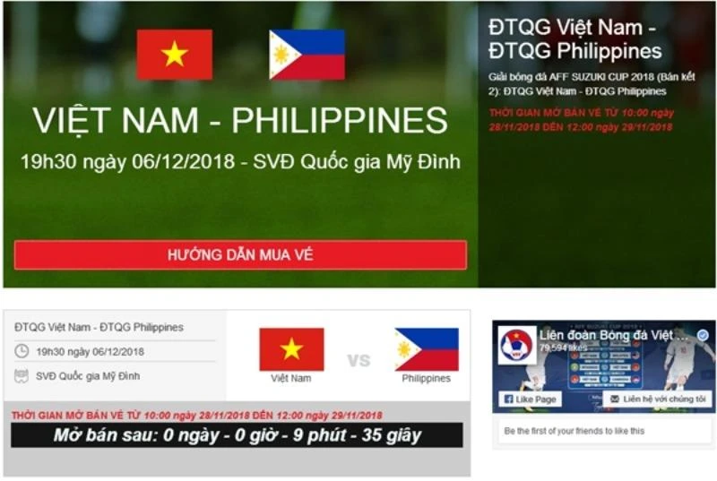 Để mua vé xem trận chung kết AFF Cup 2018 lượt về giữa Việt Nam và Malaysia (diễn ra vào ngày 15-12), người hâm mộ có thể truy cập hai website sau: vebongdaonline.vn và vebongonline.com.vn.