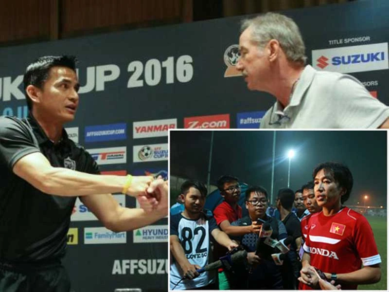 HLV Riedl và Kiatisak là hai cái tên quen thuộc của bóng đá Việt Nam (ảnh lớn) nhưng khó đến Việt Nam sau đời thầy ngoại Miura (ảnh nhỏ) từng bị chấm dứt hợp đồng trước thời hạn từ thất bại ở SEA Games 2015. Ảnh: ANH NHẬT