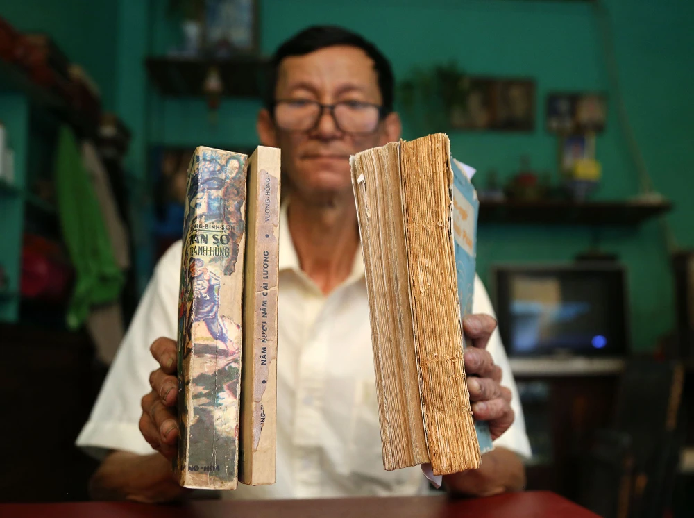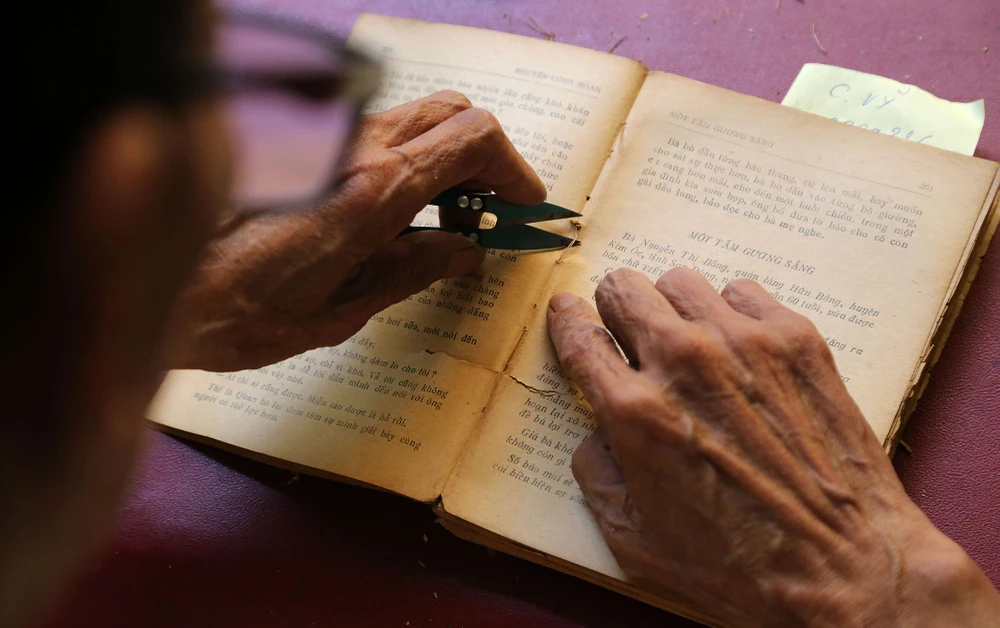 Với ông Rạng, công việc phục chế sách còn giúp ông biết thêm nhiều thứ. Với những cuốn sách hay, ông vừa làm vừa tranh thủ đọc để có thêm kiến thức cho mình.