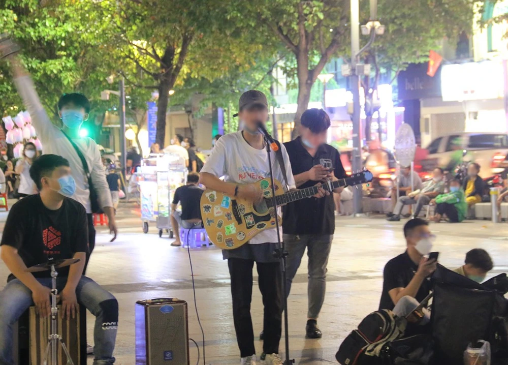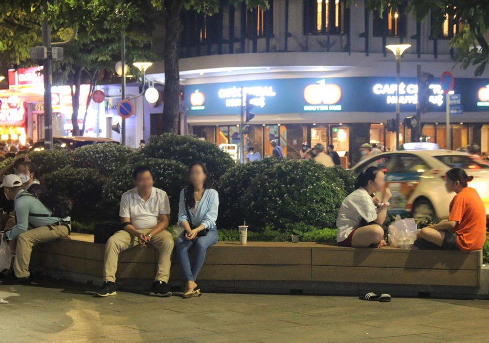 Ghi nhận tại phố đi bộ Nguyễn Huệ (quận 1), trong hai buổi tối cuối tuần, mọi người đến đây dạo chơi, tụ tập ăn uống hát hò rất đông. Nhiều người đeo khẩu trang và giữ khoảng cách nhưng vẫn còn một số người không chấp hành các nguyên tắc phòng chống dịch.