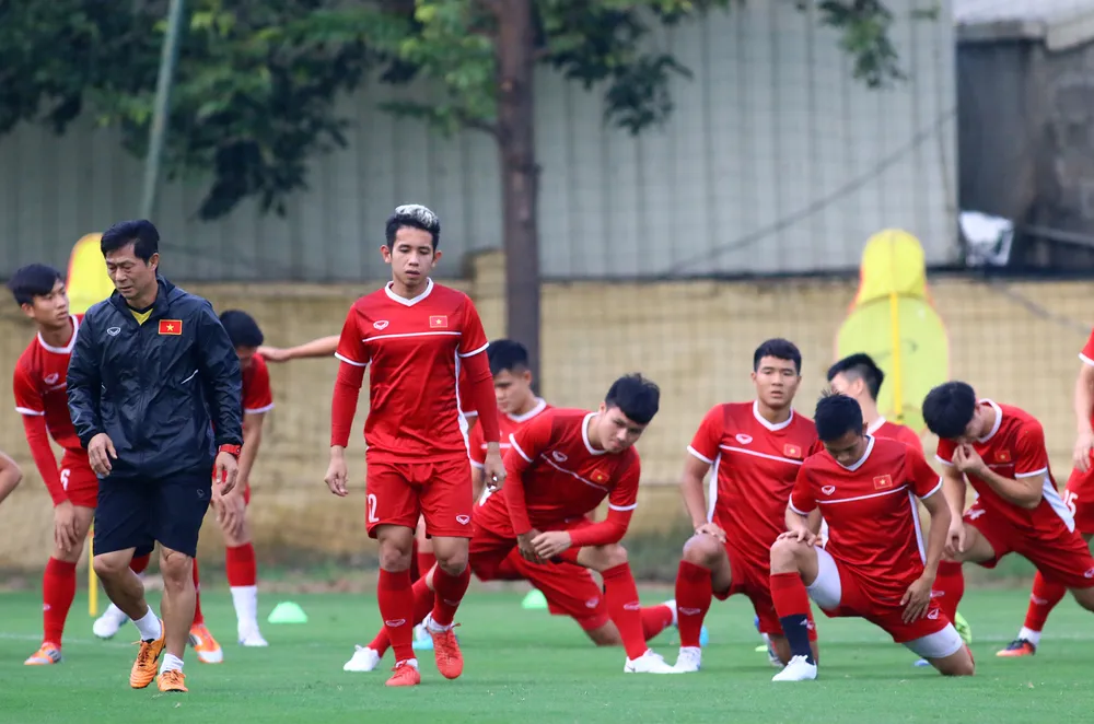 Các tuyển thủ Việt Nam tích cực tập luyện.