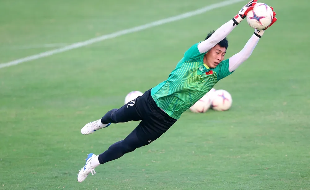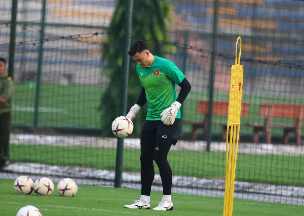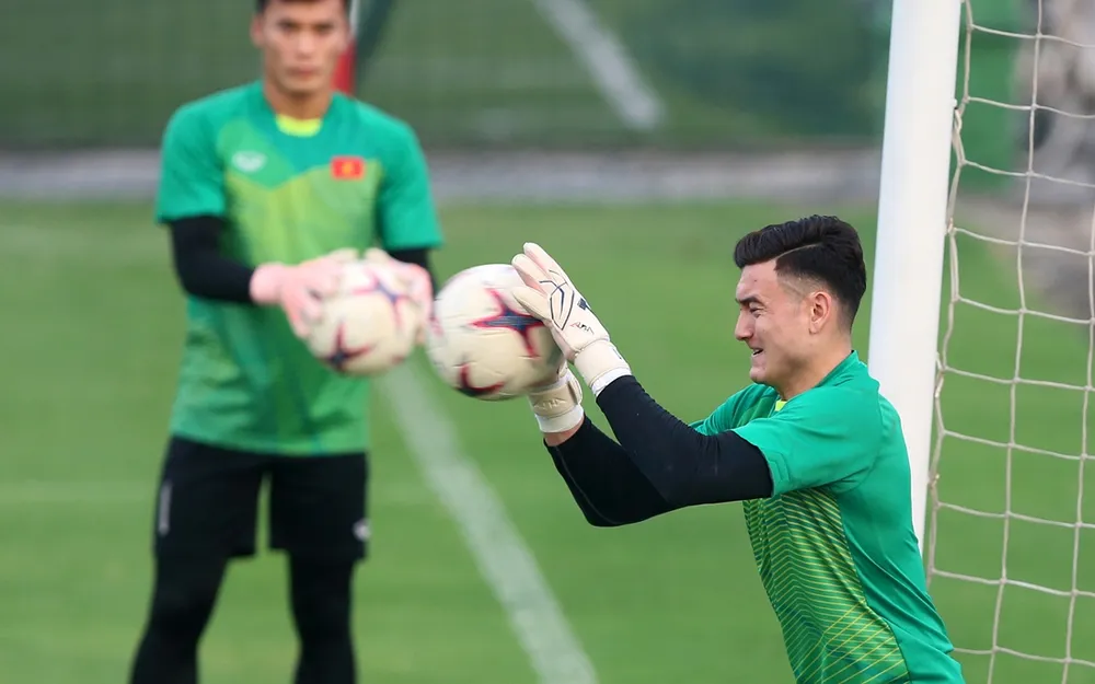 Văn Lâm vẫn là thủ môn số 1 của đội tuyển Việt Nam, phía xa là thủ thành Bùi Tiến Dũng.