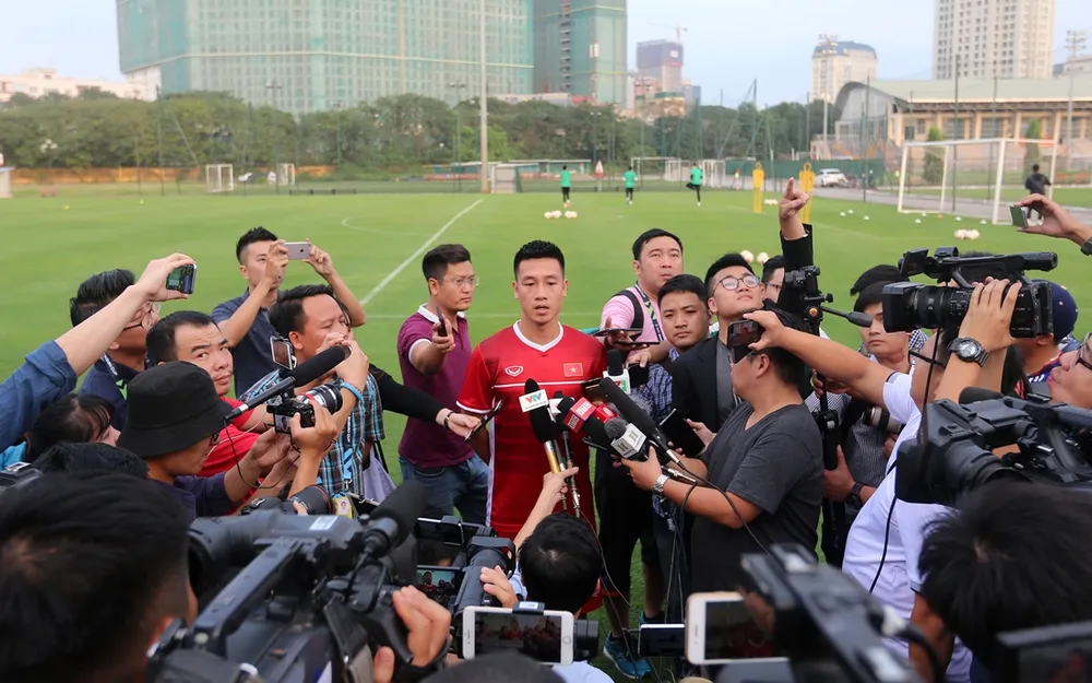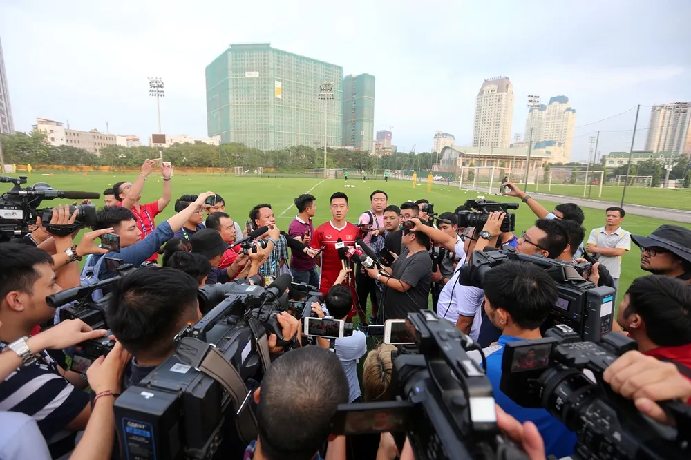 Cánh phóng viên tràn ngập trong buổi tập của đội tuyển Việt Nam.
