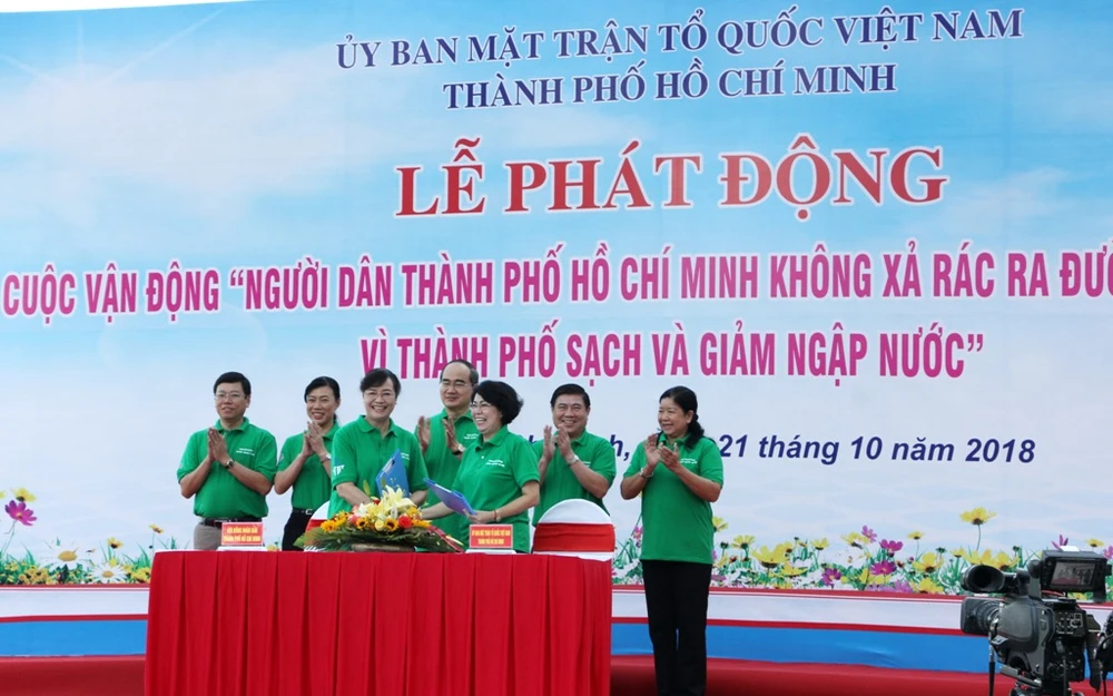 Sáng 21-10, tại khu chung cư 1.050 căn, đường Phan Chu Trinh, phường 12, quận Bình Thạnh, Ủy ban MTTQ Việt Nam TP.HCM đã làm lễ phát động phong trào: “Người dân TP.HCM không xả rác ra đường và kênh rạch: Vì thành phố sạch và giảm ngập nước”.