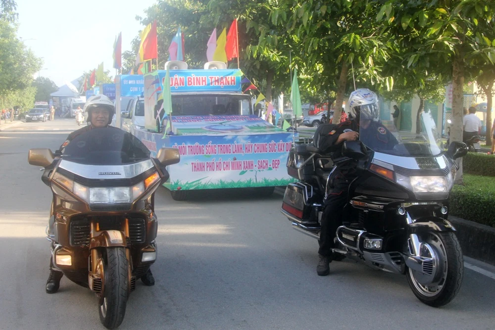 Đoàn xe tuyên truyền bảo vệ môi trường của quận Bình Thạnh kêu gọi người dân tích cực hưởng ứng cuộc vận động không xả rác…