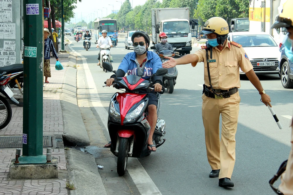 Lực lượng CSGT đang kiểm tra, xử lý người vi phạm giao thông tại TP.HCM. Ảnh: LÊ THOA