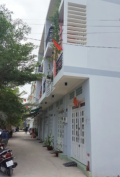 | Ban công vươn ra 1 m Theo ghi nhận trong ngày 10-5, bốn căn nhà liền kề của ông Hải đang trong quá trình xây dựng, mỗi căn hai tầng. Hiện công trình đã hoàn thiện phần thô. Tại công trình không có công nhân xây dựng. Trong khi đó, dãy nhà của ông Cường (được thiết kế dạng nhà phố gồm tám căn liền kề, mỗi căn đều có số nhà riêng biệt) đã xây dựng hoàn tất. Ban công của các căn nhà này vươn ra chiếm không gian đường đi hơn 1 m. Sáu căn nhà của bà Hân cũng có kết cấu tương tự dãy nhà của ông Cường. |