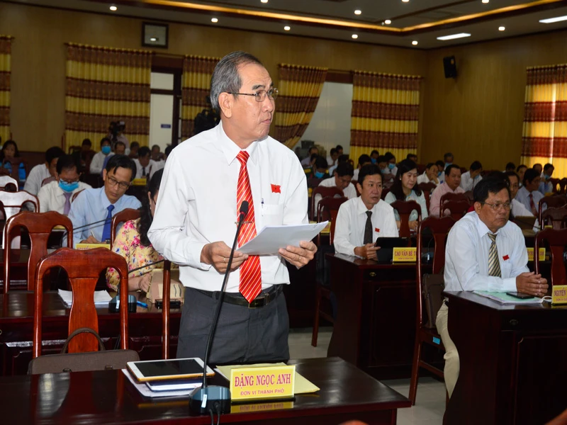 Đại biểu (ĐB) Đặng Ngọc Anh chất vấn lãnh đạo UBND tỉnh việc chậm trễ hỗ trợ người dân trong đợt hạn mặn mùa khô 2019-2020.