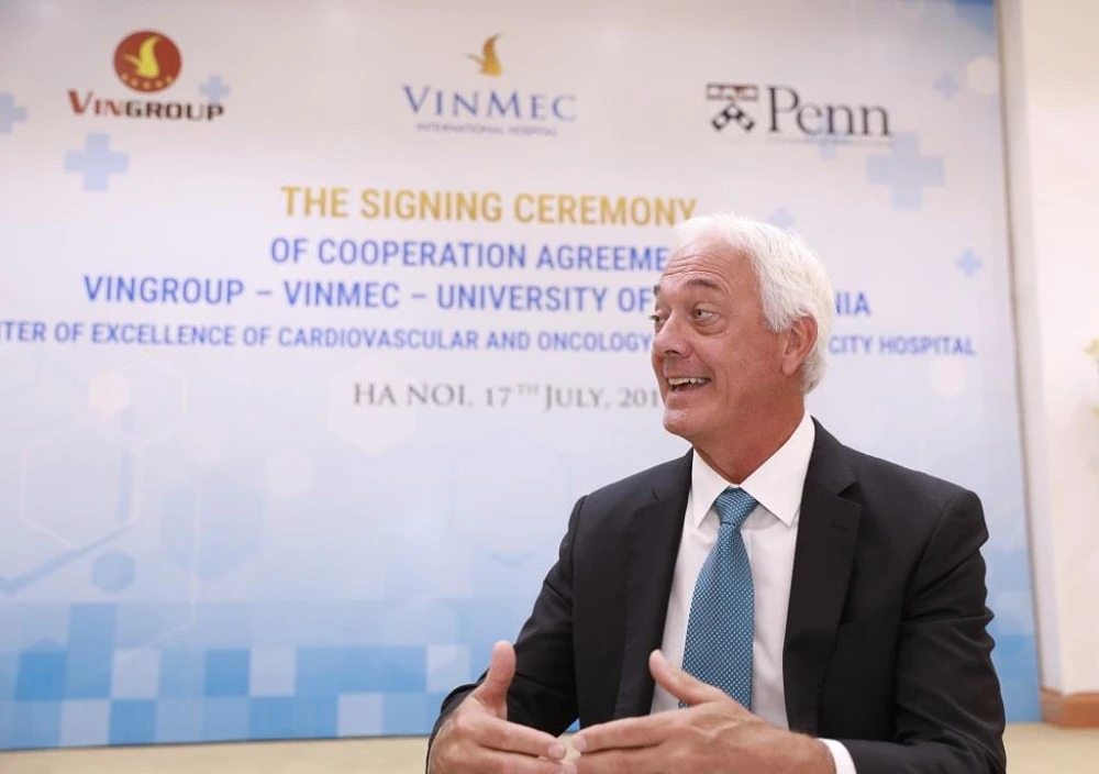 Trước đó, chúng tôi chỉ thành lập đối tác ở cấp độ Nhà nước. Cụ thể là trực tiếp ký kết với các bộ và cơ quan trực thuộc Chính phủ hay những ĐH Quốc gia. Tuy nhiên, chúng tôi ấn tượng trước những cam kết và chiến lược hành động của Vingroup, Vinmec, VinUni và tự tin vào việc thành lập COE. Việc hợp tác với Vinmec cùng kinh nghiệm và thế mạnh của Penn về tim mạch lẫn ung bướu, sẽ nhanh chóng thúc đẩy mục tiêu đem chương trình chăm sóc y tế đến toàn thể cộng đồng mà chúng tôi đã đề ra.