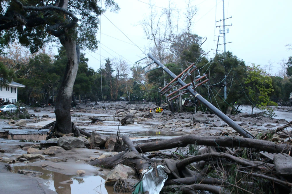 Mới đây vào cuối tháng 12, khu vực này cũng bị thiêu rụi trong trận cháy rừng Thomas lớn nhất lịch sử, gần 1165 km2 khu vực dãy núi dốc Santa Ynez đều bị thiêu rụi. Sau đó là mưa lớn kéo đến, gây ra trận bão lớn sau gần một năm hạn hán. Đây là đặc điểm khí hậu và địa mạo của khu vực này, xoay quanh"chu kỳ cháy rừng - lũ lụt ".