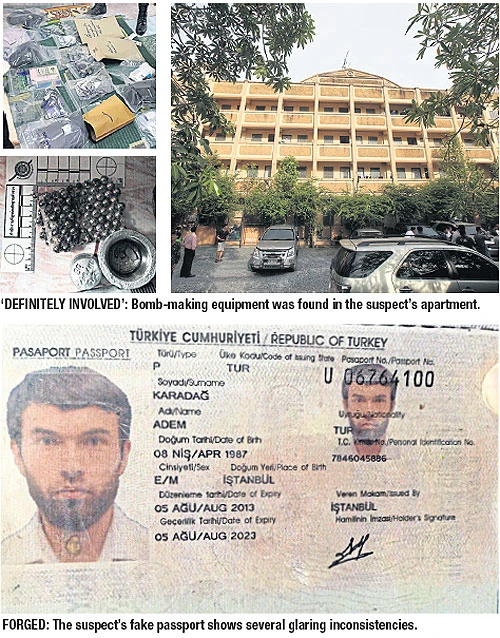 Nghi can có tên Adem Karadag mang hộ chiếu Thổ Nhĩ Kỳ. Khám xét tại căn hộ, cảnh sát tìm ra nhiều hộ chiếu của Thổ Nhĩ Kỳ và đặc biệt là các thiệt bị chế tạo bom. Trong đó có rất nhiều những viên bi để chế tạo mảnh bom gây sát thương.